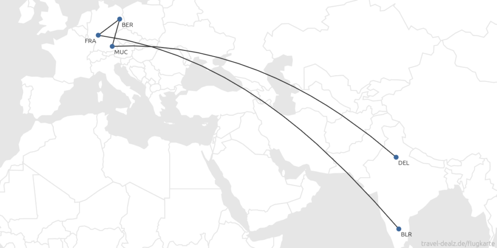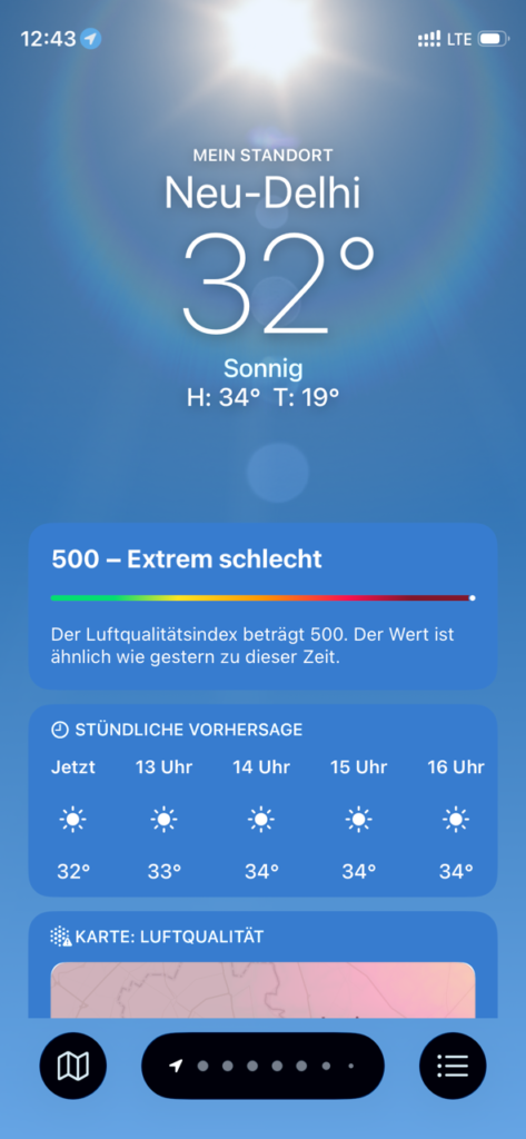 Die Idee, einmal nach Indien zu reisen stand bereits länger im Raum. Tatsächlich war dies auch eine der Zieloptionen für das Sabbatical gewesen. Anfang des Jahres wurde es dann etwas konkreter und nun war es also soweit. Los ging es von Berlin über München nach Delhi. Auf der Langstrecke gab es dabei zwei erste Male: A380 und Premium Economy 😬 Der A380 ist ja bereits von außen und weitem ein ziemlicher Trumm. Von Innen bekommt man davon allerdings gar nicht so viel mit. Vielleicht hatten wir Glück mit dem Wetter gehabt aber der Flug war unglaublich ruhig (vielleicht liegt es aber auch an der Größe und dem Gewicht der Maschine). Kein einziges Mal musste man sich zwischendurch anschnallen und es gab nicht einmal den Hauch einer Turbulenz. Die Premium Economy hatten wir relativ günstig erworben. Dafür gab es bequeme, breite Sitze mit vernünftiger Beinfreiheit. Die Betreuung war sehr nett und angenehm häufig und das Essen war auch relativ gut.